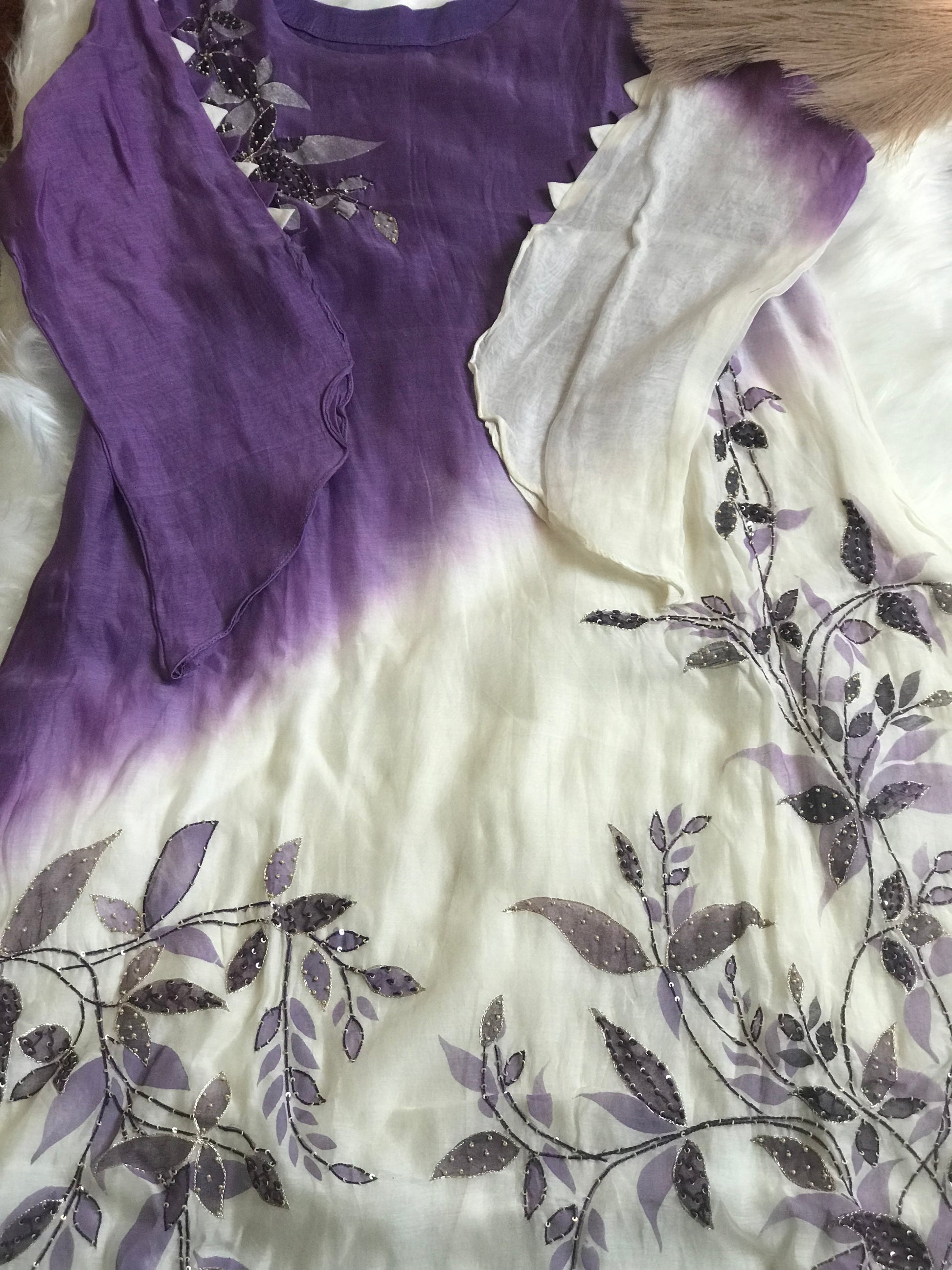 Mul Chanderi outfit featuring a seamless blend of purple and white hues